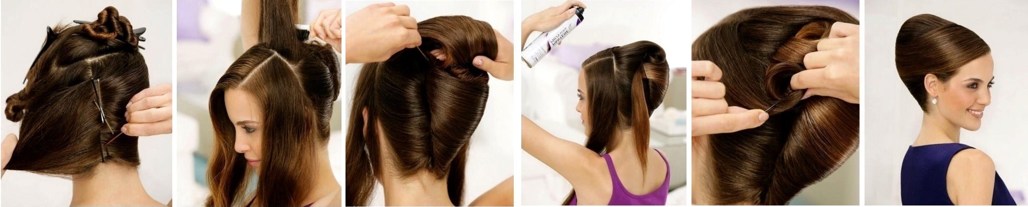To create this hairstyle you will need to split the hair into two parts. Swipe the sharp edge of the comb along the line from ear to ear through the back of the head. The hair which appeared to be above this line while fasten with a hairpin.