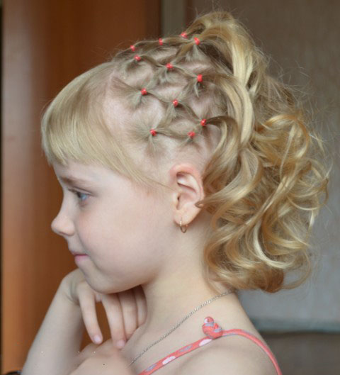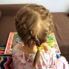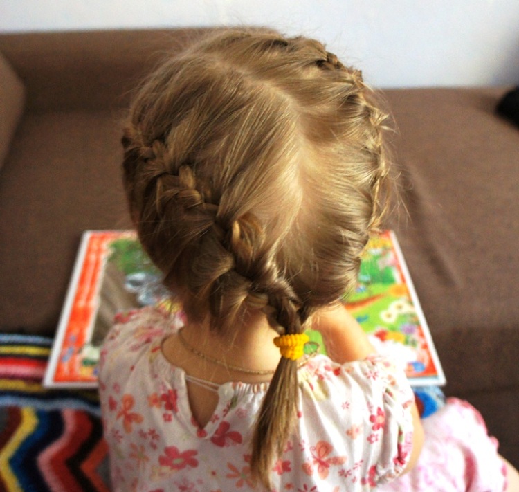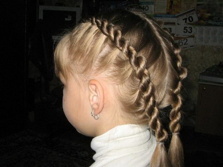 For a little girl, twisted tails can be a good styling option. They are located one after the other from the frontal part. The end result looks quite interesting. Hair can be supplemented with small accessories, but not metal. At first glance, the creation of the described styling may seem complicated, but in the process of work, the initial opinion changes dramatically.