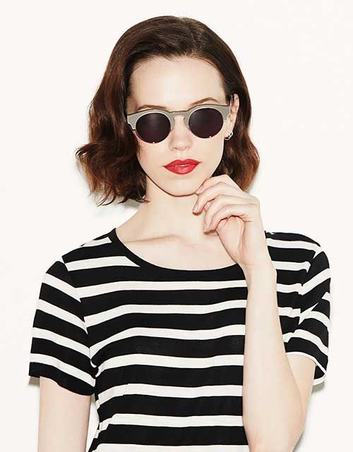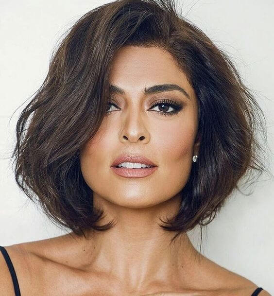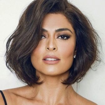 On the dark short hair presented styling looks very impressive. For its design does not require additional accessories. The wavy lines of the bangs gently frame the face. When creating a styling technique was used lightweight fleece, through which hair is raised in the area of the crown. The tips of the hair are maximally twisted, due to which the hairstyle has a visual lightness.