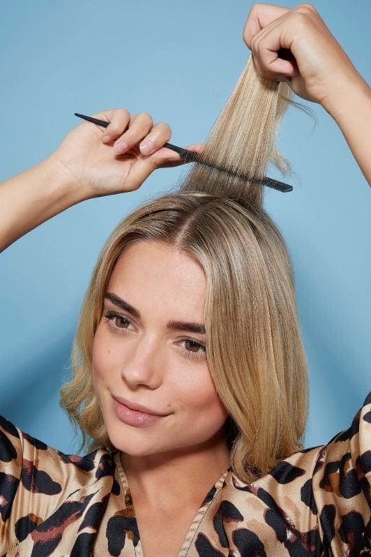 - First of all, the hair must be treated with mousse, then dried. At the time of drying the hair must be lifted from the roots up. This action will add styling volume.