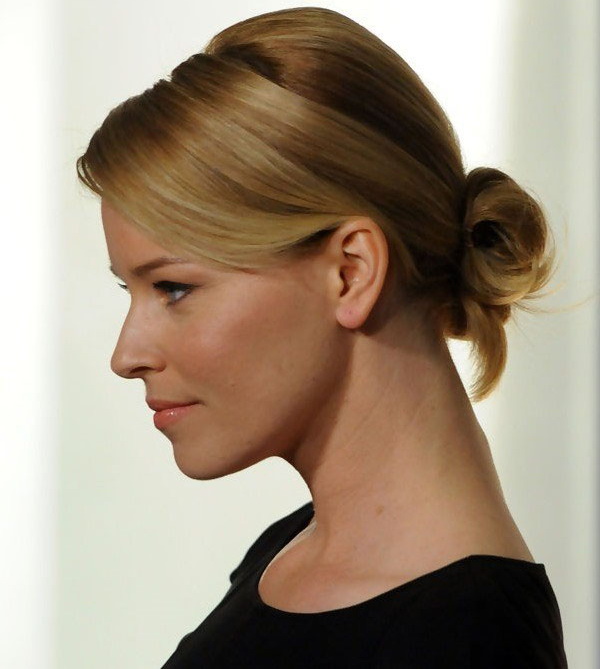 - Then the hair is collected in a lowered tail and twisted upward, creating an elongated bundle.