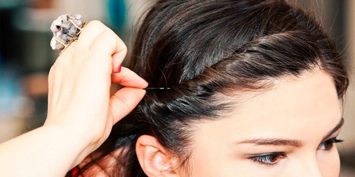 - Then you will need to collect the front strands of hair, fully opening the face, and comb them back, securing the tips of the invisible. It is very important not to tighten the curls, but to fix them in a free position. You should not worry that hair slightly stick out or get out, it is also that highlight which introduces originality in a female image.