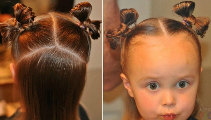 The first thing that comes to mind when creating a children's hairstyle is the original tails on the sides. The presented styling is straightforward, does not require much time for execution. Especially since the stylists managed to bring a zest to this hairstyle.