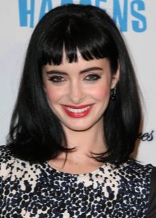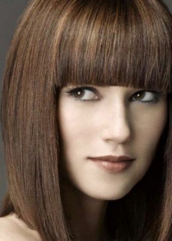 Long - in line with the eyebrows, bangs from straight hair creates the image of a femme fatale and is well suited for evening hairstyles. You can make it just below the eyebrows, but in no case milling. This will create a feeling of disorder in the hair, which in this case is inappropriate.