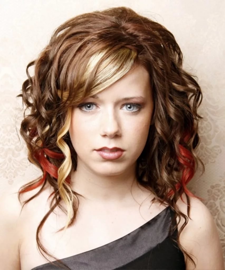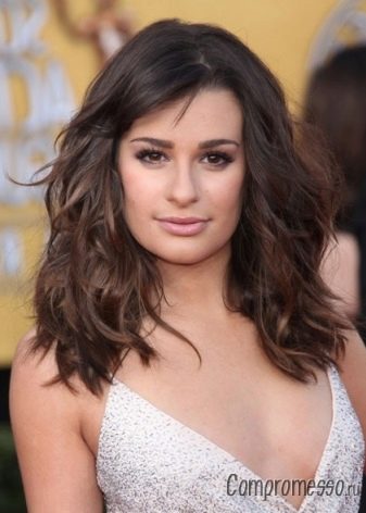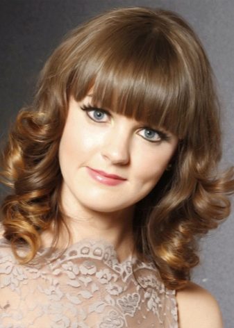 The fluffy hairstyle of medium length successfully compensates for the protruding forehead and chin of a rectangular face type. Smooth strands must be avoided.