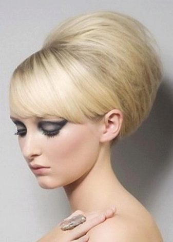 - If the hair is thin or liquid, it is convenient to do this or that type of bundle on twisted strands. To create a hairstyle you will need the same tools as in the previous case. On the back of the head in the parietal region, it is better to slightly comb it at the root. Hands to select the front part from ear to ear, comb and fix at the top of the head with a thin elastic band. Tail combed. It's okay if he gets the look of a washcloth. This will allow the beam to be properly fluffy. Hair reel around the gum, fix hairpins. The result was a volumetric bunch.