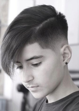 If you want to make such a haircut, then you should first shave the whiskey. Moreover, most of the hair, including bangs of small length, is combed to the side. From above, everything can be fixed with a special gel or just a varnish.