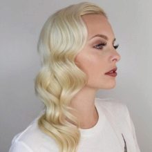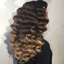 The combination of basal volume and large corrugation or “surfer” curls looks very nice, especially in combination with coloring like Californian highlighting with the effect of sun-bleached hair.