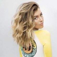 - volume with careless waves at medium length looks at the same time fresh and elegant;