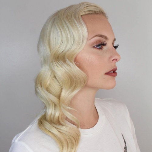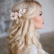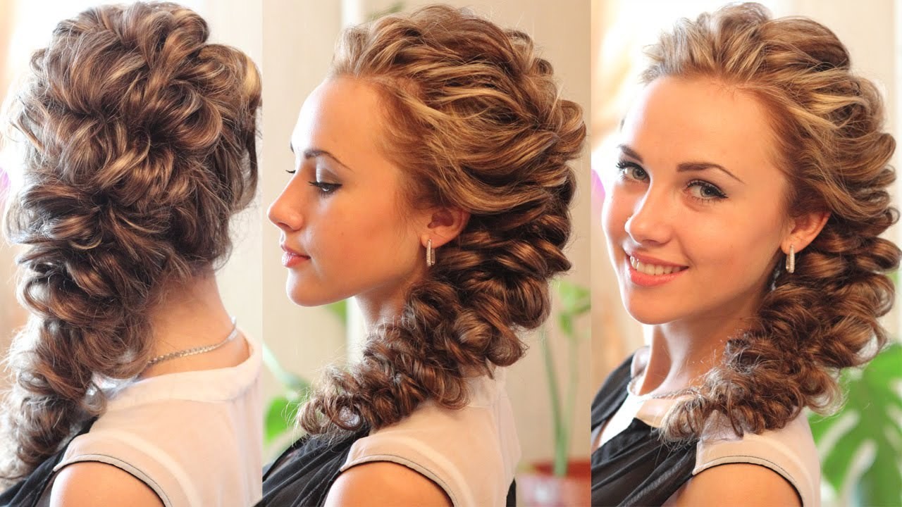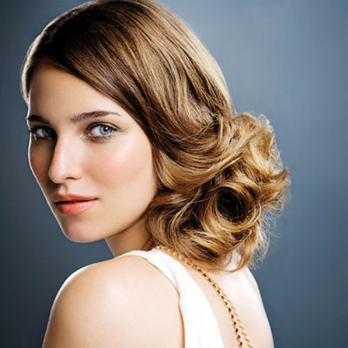 Another variant of the hairstyle is to make a side parting, volumetric curls in the manner described above, after which all the hair should be fixed on the side and bottom, forming either tail or low refined knot. No special devices are needed for this, everything is done in a simple way.