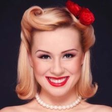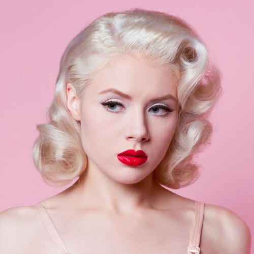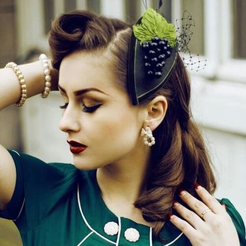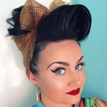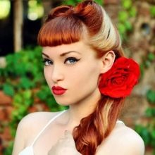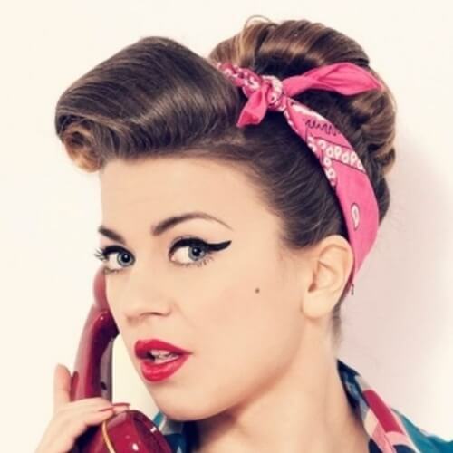 For styling in the 1950s style, you can make a voluminous tail, and if you curl the victory rolls in volume over your forehead, you will get a pin-up styling.