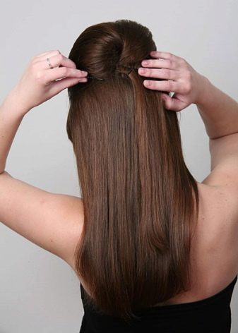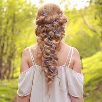 Like any other styling, weaving begins with washing and drying hair. Next, you need to comb the hair away from the face. Comb with frequent teeth to separate the not very wide strand and secure it with a clamp. Next, the same comb need to separate 3-4 strands in the crown and neck, then either lightly comb them or twist on tongs. The resulting curls need to fix varnish, and then brush them to close the strand that you separated on the forehead.