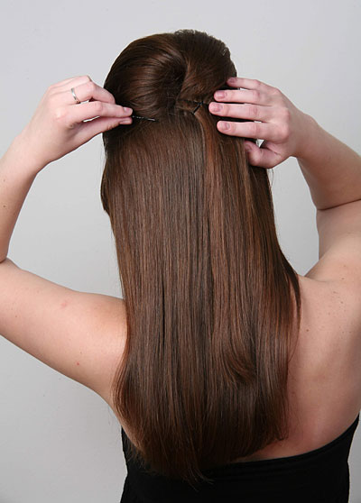 - many hairpins, stealth, small hair ties;