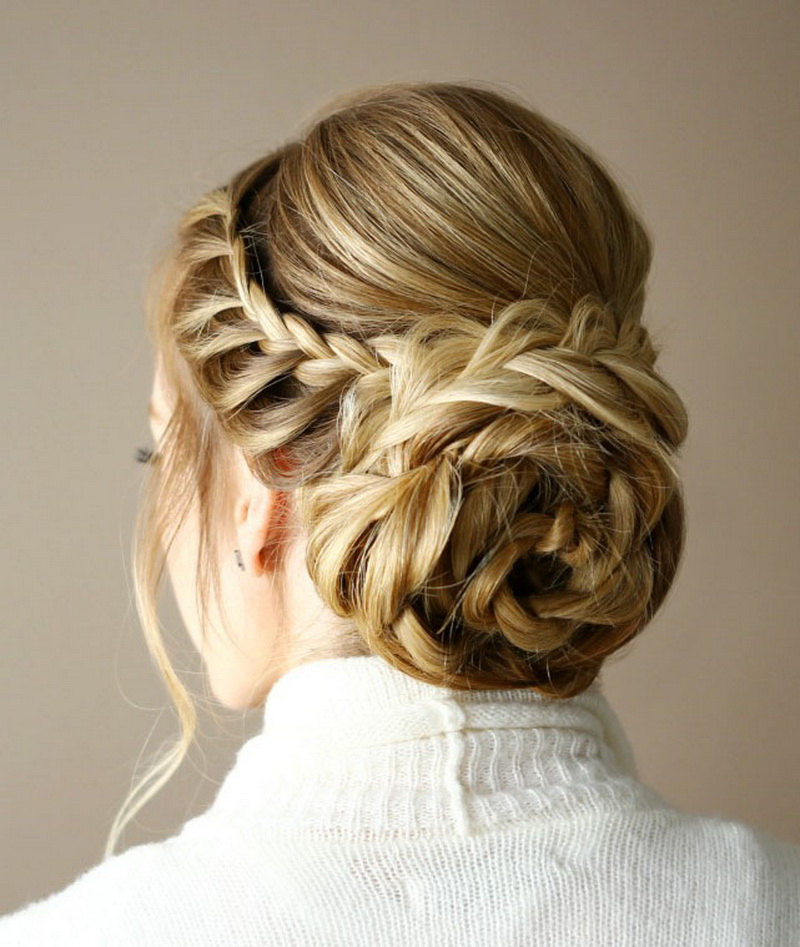 Practically any volumetric styling is suitable for medium-length hair: curls, bun, even weaving. In addition, each of them is applicable both as a daily and as a holiday.