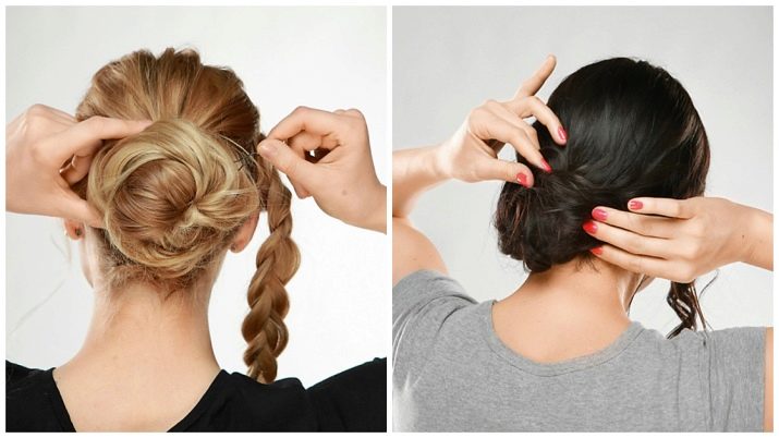 - on the back of the head, select a small part of the head of hair, twist it into a bundle and lay it in a circle in the form of a "bump";