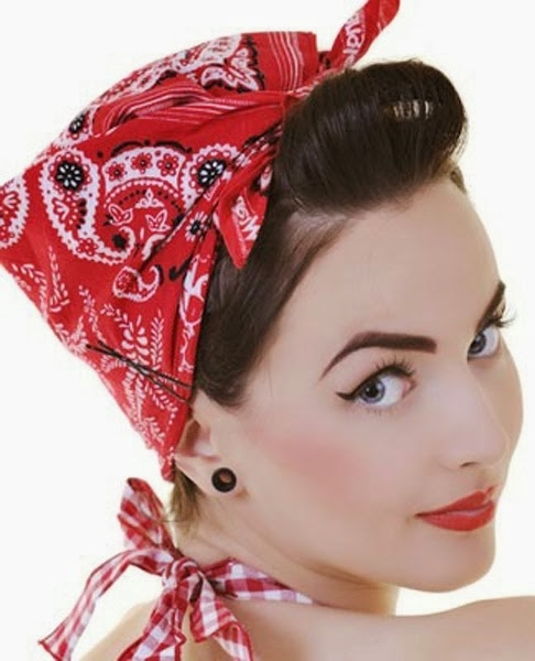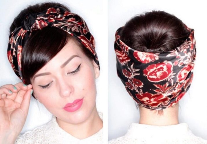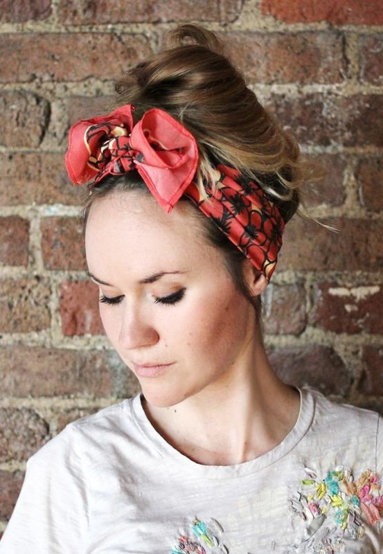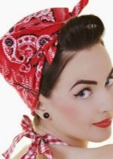 Retro hairstyle with a silk scarf will go oval and triangular face.