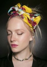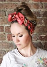 The retro styling with the use of a silk scarf has remained topical for years. It looks very stylish, besides it allows you to hide any flaws (for example, not very neatly stabbed hair ends). The shawl can be knotted at the top, front or bottom, depending on your desire.To create a retro hairstyle, you can use an ordinary scarf, or you can use a special double layer, inside which wire is inserted, so that you can give the scarf the shape you need. This will give you additional options for creating hairstyles.