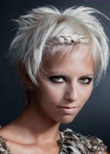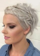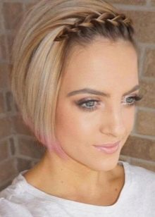 Provided that the hair keeps the given shape, the bezel of braids can be braided even on a haircut “like a boy” or “pixie”.