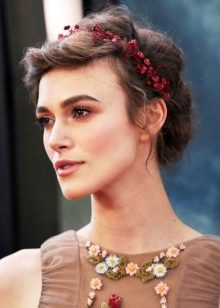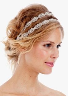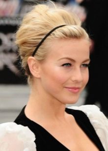 Another very popular hairstyle - laying "under the hoop." A round bezel is put on the head, and hair from one temple to another is hidden under it through the bottom. Thus, it turns out the "Greek" styling. Variants of such a hairstyle are hair styling not only under the bezel, but also under a wide elastic band, ribbon or even (if you have the appropriate skill) under a silk scarf.