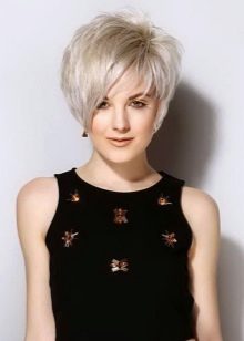 Laying on one side can be done on any short cut - from pixie to bob. The only difference is that in the first case, long bangs and hair on the crown are combed and fixed to one side, and short strands on the temples emphasize the asymmetry of the hairstyle, and in the second case, the side strands need to be stabbed to create an asymmetric effect. Such styling looks equally beautiful day and night.