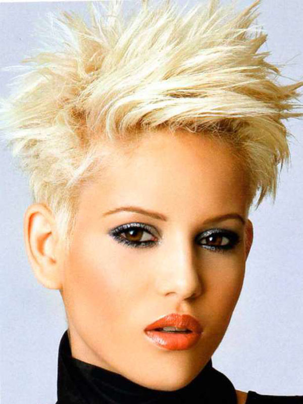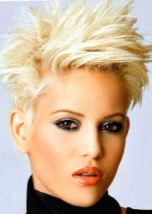 At home, you can create a mohawk (of course, if you have a pixie haircut). To do this, the long part of the hair (head) must be dried upwards using a hair dryer, a brush and a small amount of mousse. Once the hair is completely dried, the hair should be fixed with gel. After the gel has dried, it is necessary to apply hairspray on the resulting “mohawk”.