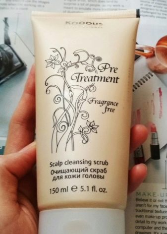 In addition, girls with scalp prone to fat should be used once every 2 weeks when washing a special scrub. It washes the area of the hair roots, cleans its horny particles from the scalp. Thus, your mane looks even more voluminous and well-groomed.