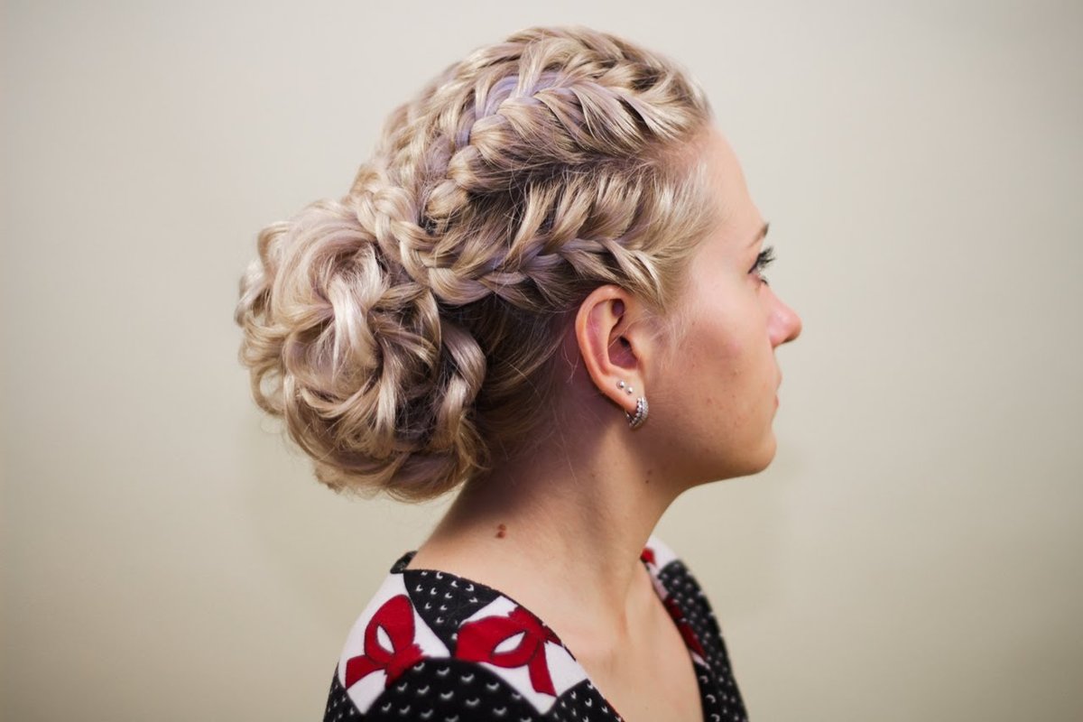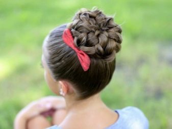 There are also very festive types of bunches, in which different types of braids seem to be woven into the main part of the hairstyle. They are a little harder to do, but if you fill your hand, you can create real masterpieces on your head. In addition, in such hairstyles you can gently weave colored ribbons, which will give your hairstyle unusual.
