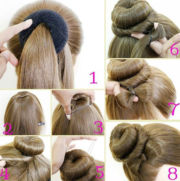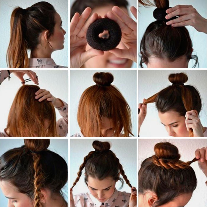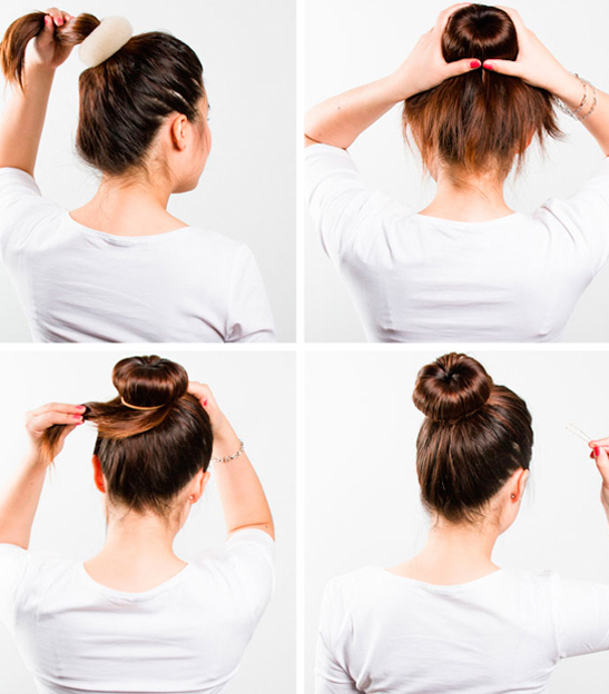 Hairstyles that can be created with the help of a donut are very practical and easy to create, which gives a huge advantage over complex hairstyles, the creation of which can take more than one hour. Bagel can give hair volume, easily combined with a wide variety of accessories, suitable for almost any event. This hairstyle can be quickly knotted, if you suddenly need an unexpected change of image. Simple bagel hairstyles win the hearts of more and more people, which is not surprising.