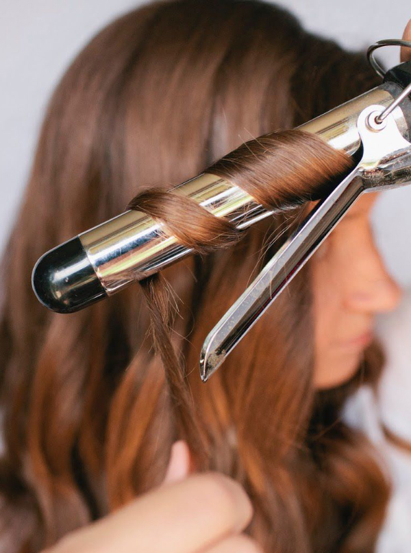 - tuck hair under the roller.
