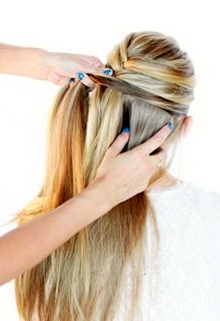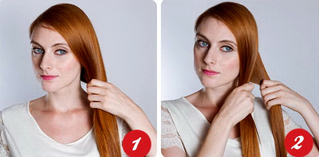 - The separated strand should be connected to the right side of the hair and then connected to the left.
