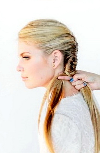 - "Fishtail" is equally well suited for everyday and festive images. Such a spit can be one and be located in the center or there can be 2 sides. Location options are quite a few, because you can braid a similar braid in a circle.