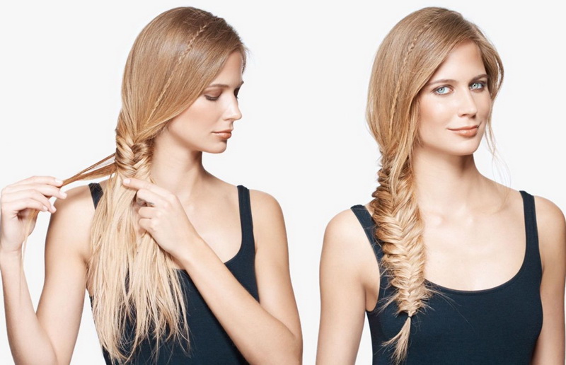 - If a girl's hair is not very thick, then with the help of a fish's tail, you can slightly add volume to it, which is also a significant bonus.