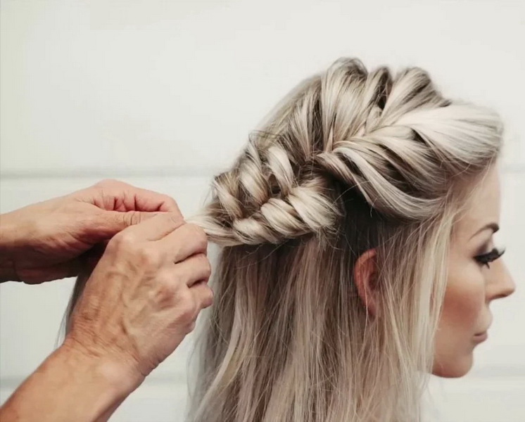 - To get the perfect braid you need to properly use your hands. With your free hand from the opposite side, you should take a new strand of hair and twist it with the already obtained scythe, and then you just need to repeat these actions until the end of the weave.