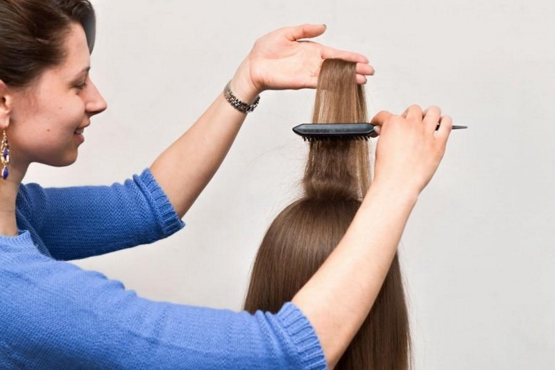 - Next, you should carefully separate one strip of hair from the top of the left side.