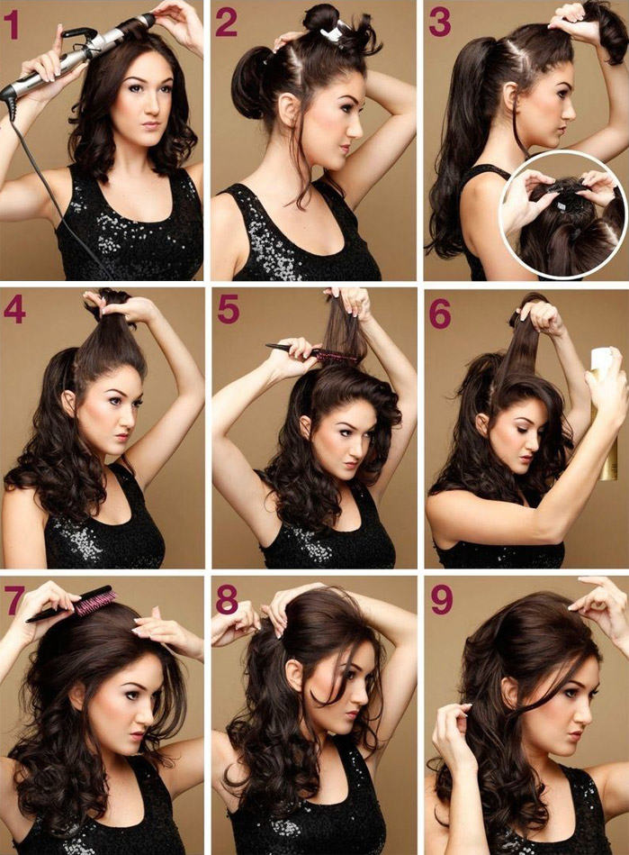 Women's aesthetic hairstyles with side curls and effective bouffant can be the perfect solution for a retro-themed party.
