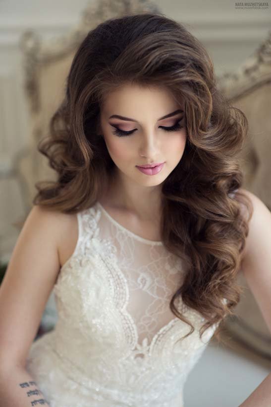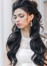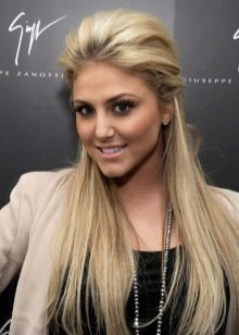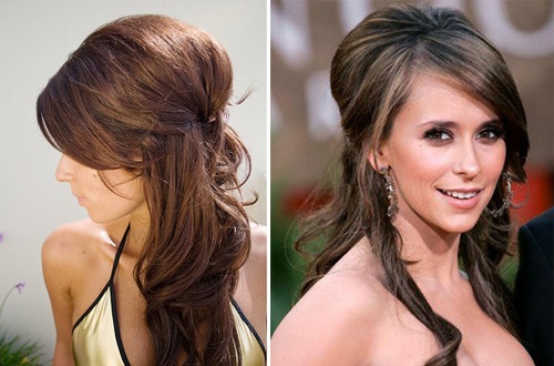Gentle, easy and coquettish on many girls with long shovel of hair, look elegant solutions and with a fleece, and with perfectly curled locks. The loose strands, along with the pile, always remained in trend and looked superb provided the right performance. To create this fascinating styling, you will need to collect strands from the upper surface of the head, and then comb and lay them.