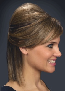 - To visually narrow the face, you should do high bouffant over the line of the forehead. It can be assembled on top.