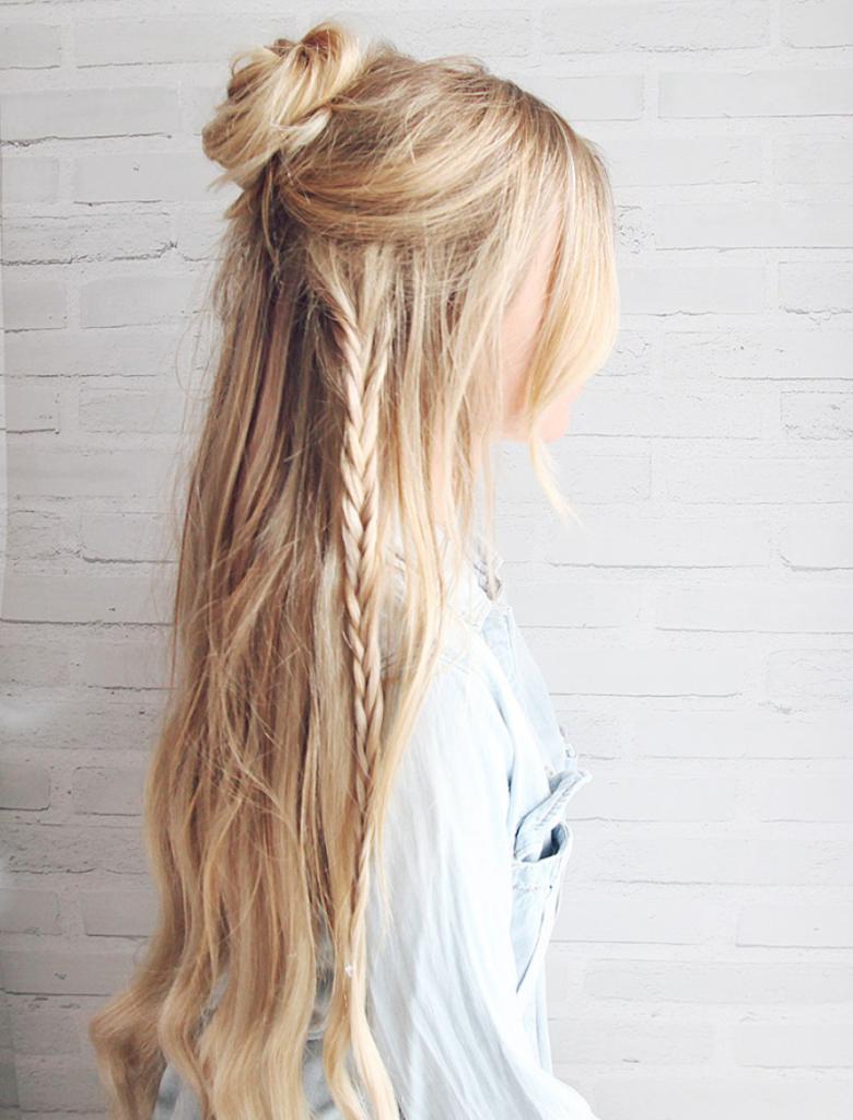 See beautiful hairstyles with a bun and flowing hair in the video below.