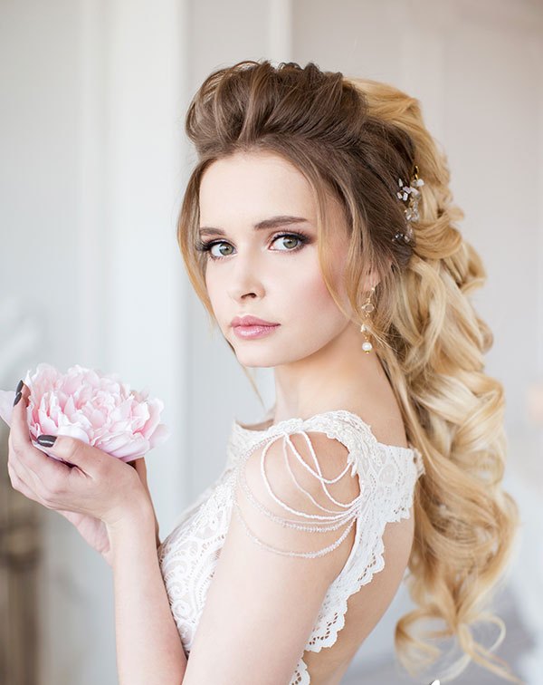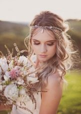 Hairstyles with flowing hair are ideal for a variety of occasions. Wedding celebration is no exception. In such an environment properly decorated hairstyle will look harmonious. So, one of the most popular wedding styling is semi-assembled twisted strands, laid on its side. There are a great many variations of this delicate styling.