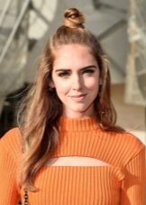 - Before you collect the hair in a bun, you can straighten them with a hot ironing or, conversely, twist it with a curling iron. Both in that, and in other case the hairdress will turn out attractive and original.