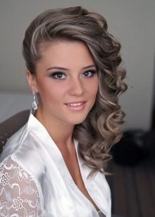 - First you need to carefully prepare the side parting on the long head of hair. Curl after that loose strands using a curling iron or a hot iron (yes, they can not only straighten hair). Continue to do so, reaching about the middle of the length of the curls.