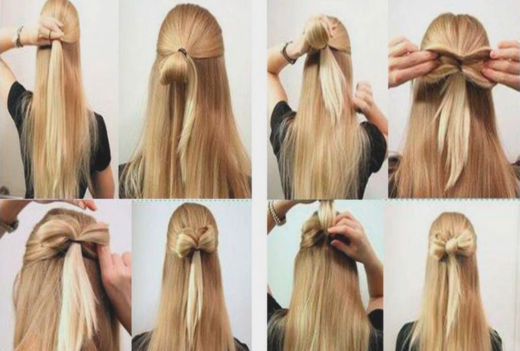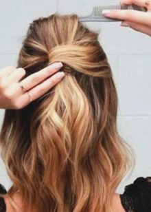 A festive hairstyle with flowing hair decorated with a cute bow looks very interesting and fashionable on girls. It is quite possible to do it yourself, and it will not take too much free time. To do this, do the following.