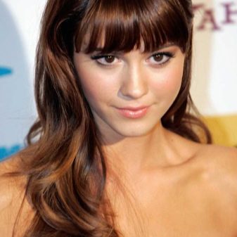 - Smaller and thin pryadochki with bangs it will be permissible to twist, using a curling iron. After that, these parts are most often laid to the side to achieve a harmonious look.