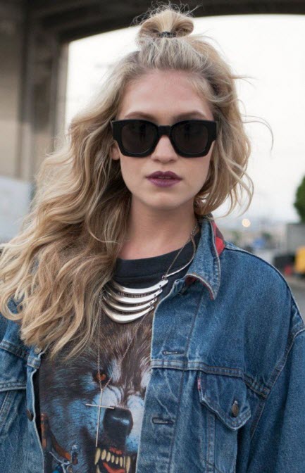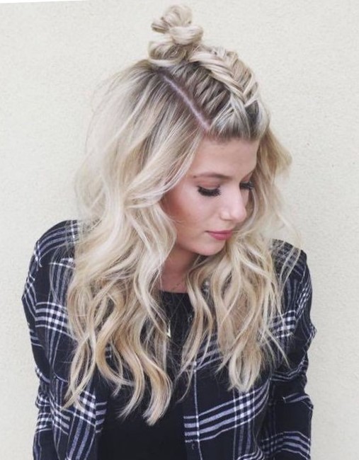 The favorite hairstyle of many girls and women is charming and cute bunch. It is done quickly and simply, but it looks gentle and feminine. It can be built along with luxurious flowing hair of decent length. The result is a very extraordinary youth styling, showing a positive attitude and a bright personality of its owner. Make this interesting hairstyle so.