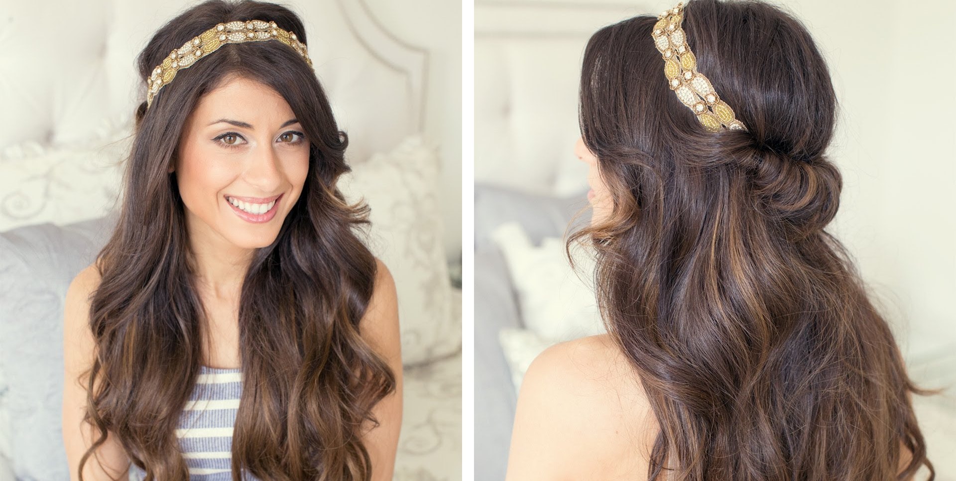 Another quick, but the original hairstyle for long flowing hair - headband. It looks fresh and stylish, but in the implementation shows itself as one of the easiest and fastest.