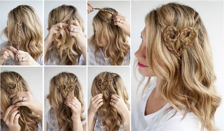 On the average length, a very unusual look looks spectacular, made in the shape of a heart, coupled with loose locks. It can be done easily and quickly. Consider what is needed for this.