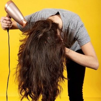 If you want to achieve a larger volume, you can slightly lift the hair at the root when drying. In this case, the hair is dried, with the head bent down, twisting and lifting at the roots with a round brush.
