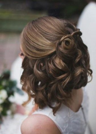 Straightened hair strands will allow you to create solemn high hair, Hollywood waves, luxurious curly curls flowing in a waterfall. The details of the decor matched in the general style will complement the hairstyle: elegant hairpins, hairpins, tiaras, wreaths, bows, ribbons.