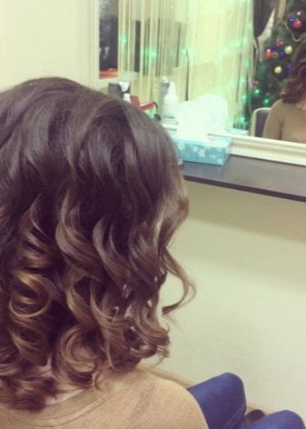 - The first method is similar to the creation of classic curls. The nuance is the formation of a curl. Starting a perm is necessary, departing a bit from the roots. To twist the iron stands diagonally at an angle of 150 degrees.
