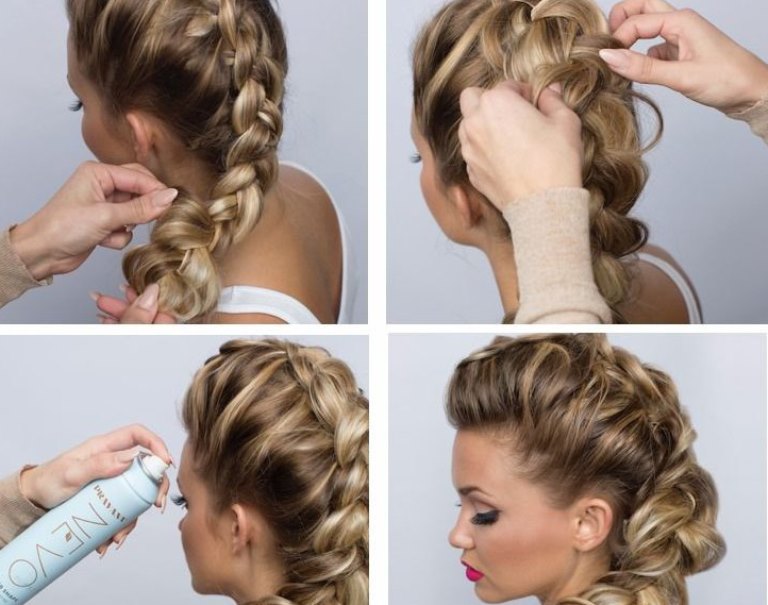 The side strands are braided into pigtails, you need to wrap the bump with them and hide the tails under it. Fix the result with hair spray or mousse to smooth the hair. The option is ideal for girls with a long neck and an oval face shape.